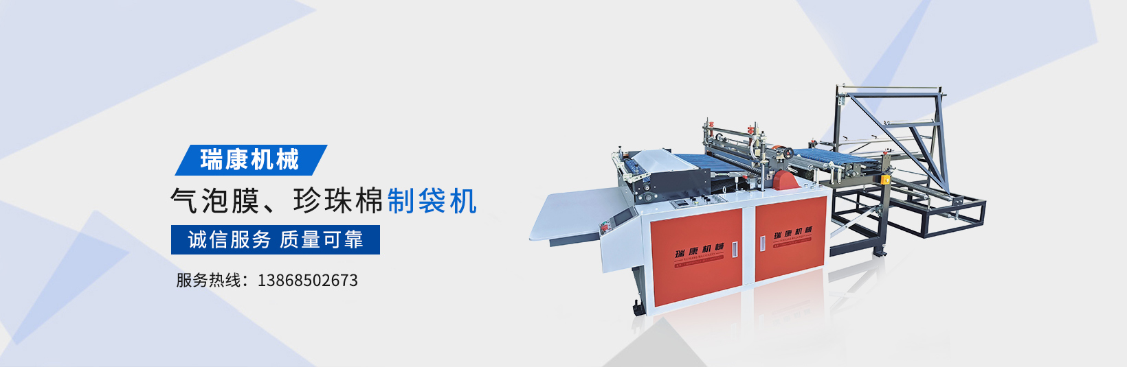 溫州瑞康機械有限公司(www_wzruikang_com.jrxpp.cn)主要生產氣泡膜機,快遞袋制袋機,包裝機,制袋機等設備。瑞康機械是國內生產塑料軟包裝系列機械設備的專業廠家之一。產品質量可靠、誠信服務,深受用戶好評,市場占有率節節攀升。